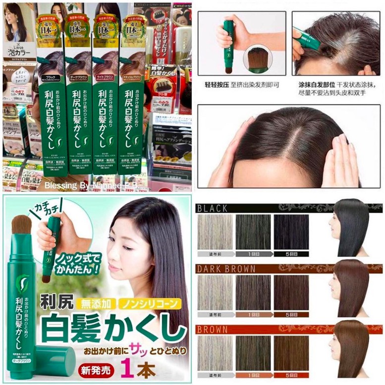 Rishiri hair coloring stick black 20h from japan. Wash your hair and scalp thoroughly with shampoo. Just dab the brush and dye directly onto your hair and then leave it to dry. Remove moisture with a towel (remove uneven coating and improve color fixation by removing moisture). Rishiri hair coloring stick 3 set dark brown.