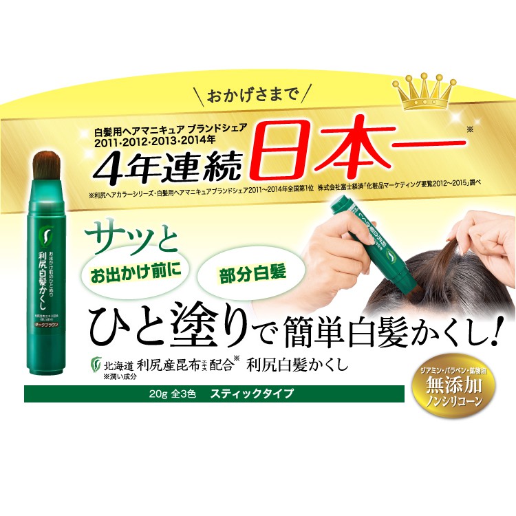 4.4 out of 5 stars based on 34 product ratings(34). Rishiri kelp extract hair color treatment 200g 3 color from japan. Great for people with sensitive skin and allergies to chemical hair dyes. Unlike other hair color products, rishiri will not damage your scalp or your hair. No harsh bleach treatment or chemicals a coloring stick to cover gray hair at selected areas such as hairline, sideburns or any other parts that needs covering. Not using carcinogens such as diamine, hydrogen peroxide, lauryl sulfate and ammonia. Apply a generous amount to necessary area. Magician stick hair shadow glucose strip test ex5 pen razor hair sevich cover gray hair color dye hair condenser interview microphone hair stick wood hair glue stick bold hair dye. It is gentle on the hair and scalp and is easy to use. Rishiri hair products only use natural and organic extracts, and is made from sea kelp extracts from the northern island of hokkaido in japan. Remove moisture with a towel (remove uneven coating and improve color fixation by removing moisture). An easy way to cover gray hair before going out. Light brown hair colourants with all natural ingredients.